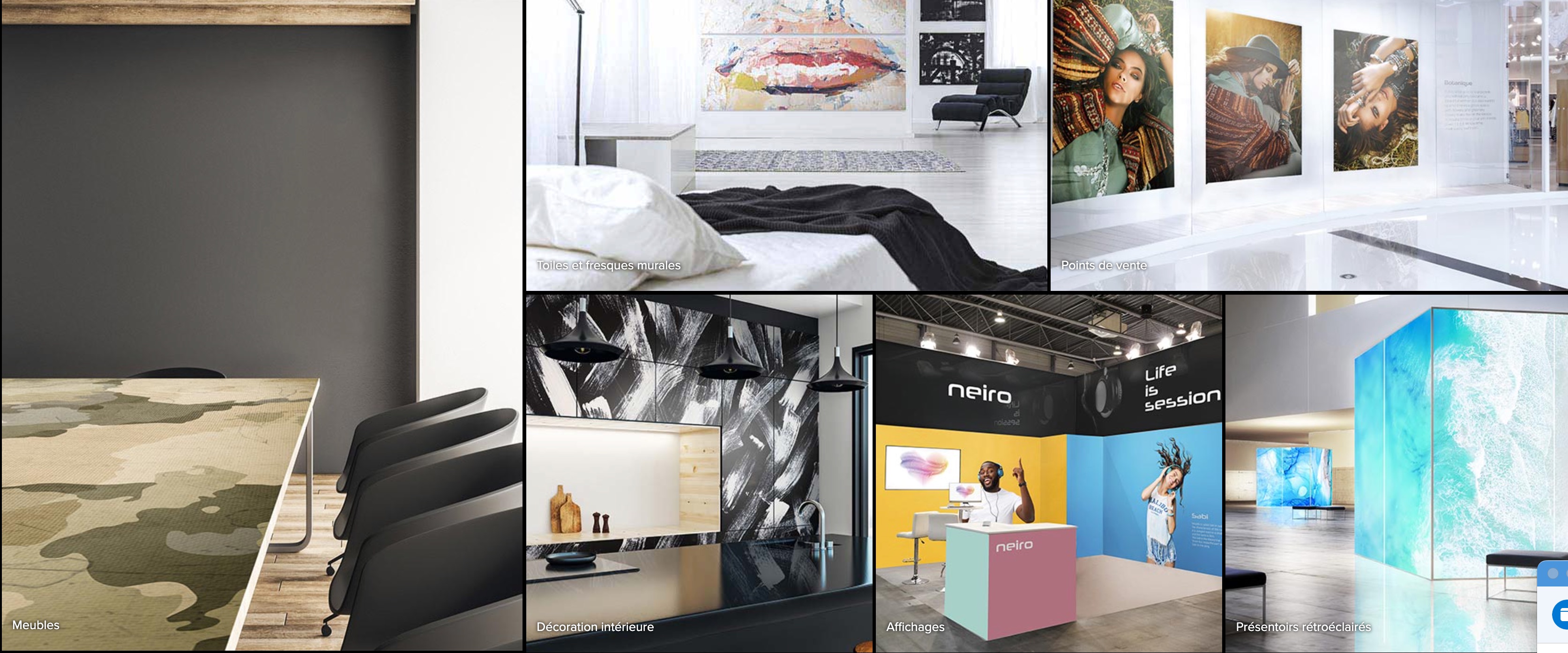 Explorez les capacités de l'encre Blanc avec une opacité élevée, idéale pour imprimer des créations distinctives sur des matériaux sombres et colorés, ou pour rehausser les couleurs CMJN sur des panneaux transparents. L'utilisation de l'encre Vernis offre la possibilité de créer des finitions mates, des textures réalistes, et des effets de relief.*