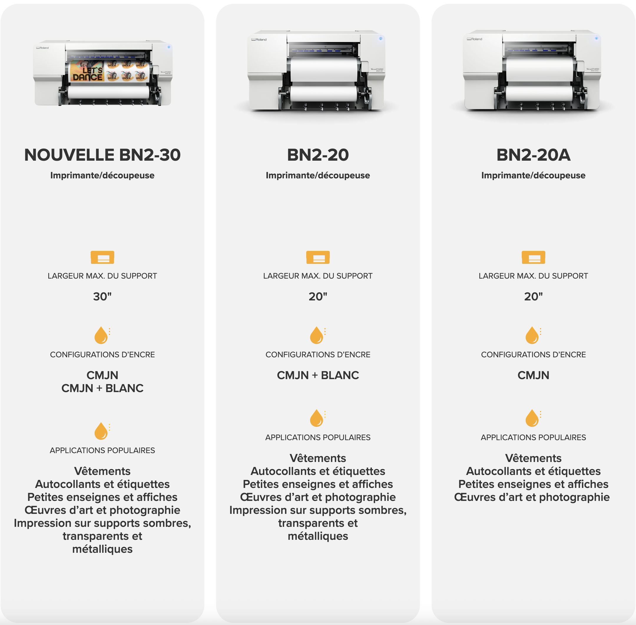 | Couleurs | BN2-20 (CMYK + White) / BN2-20A (CMYK) |