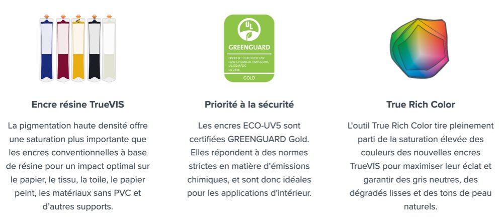 Les nouvelles encres TrueVIS à base de résine permettent les finitions de vos imprimés sans aucun délai. L'absence total d'odeur rend les encres résine idéales pour les impressions intérieures.